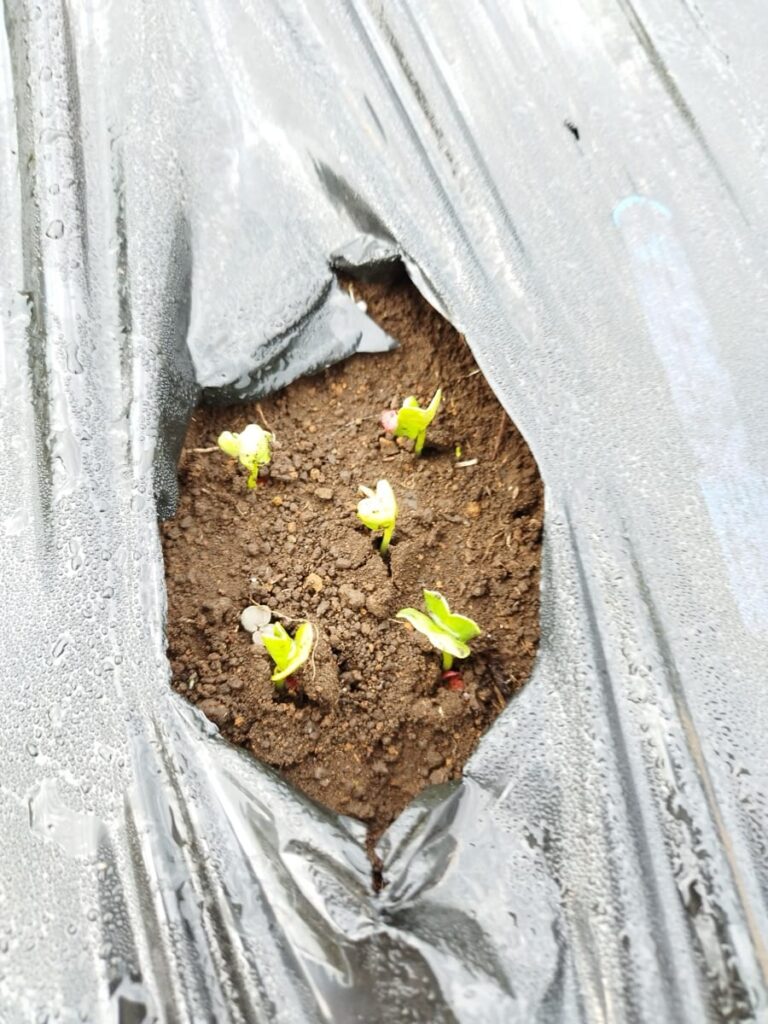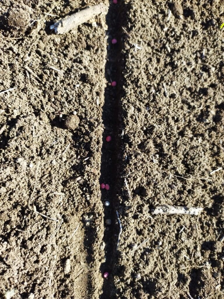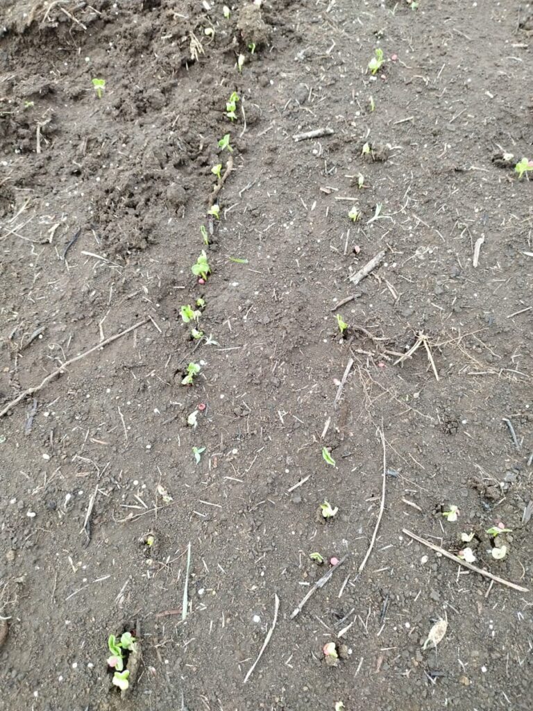 点蒔きで一箇所に5〜7粒ほど蒔いた。