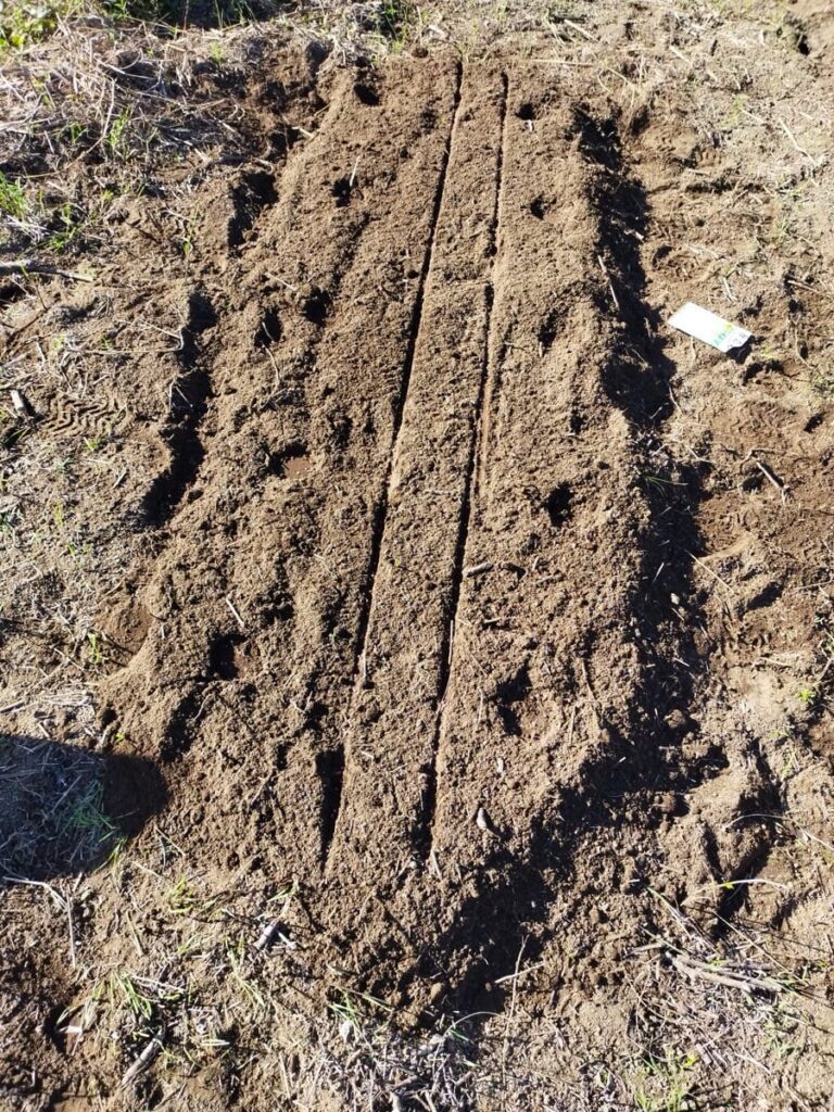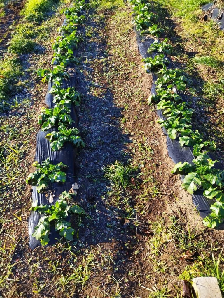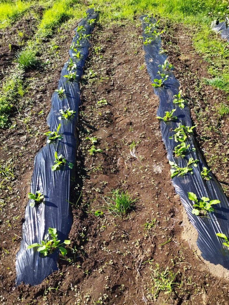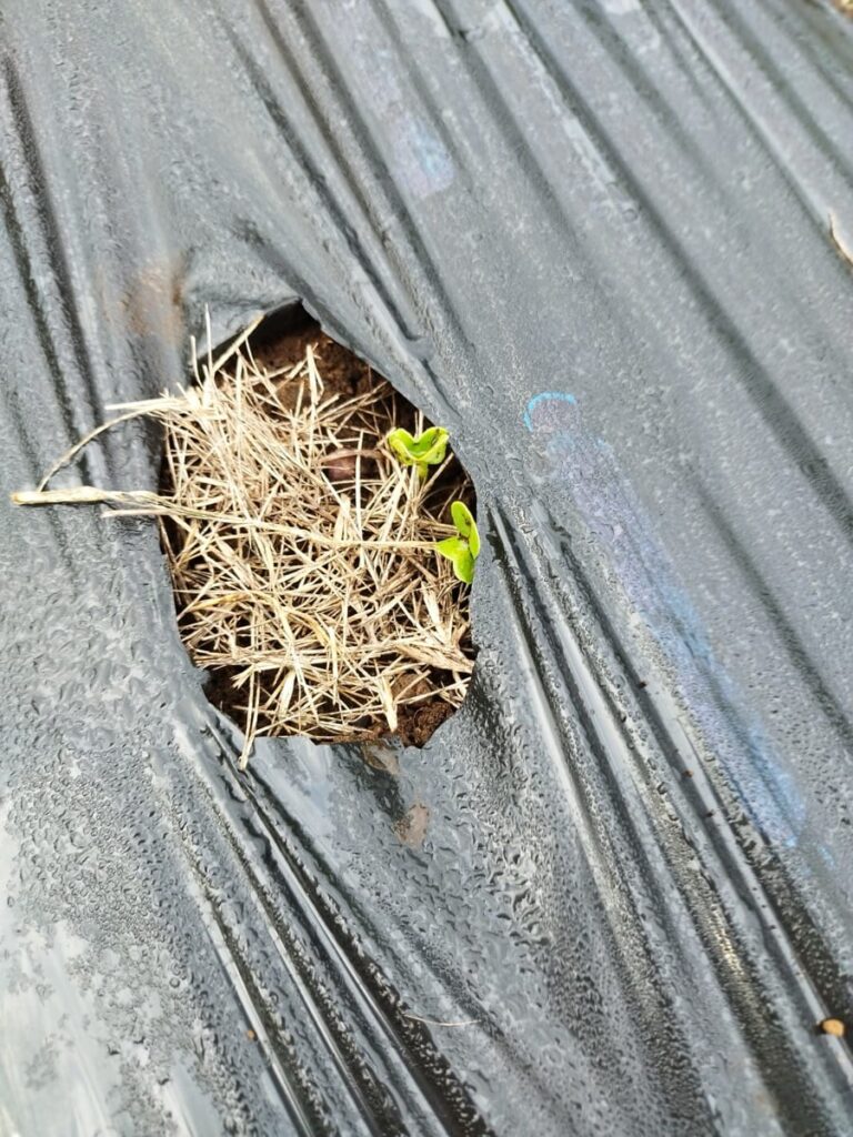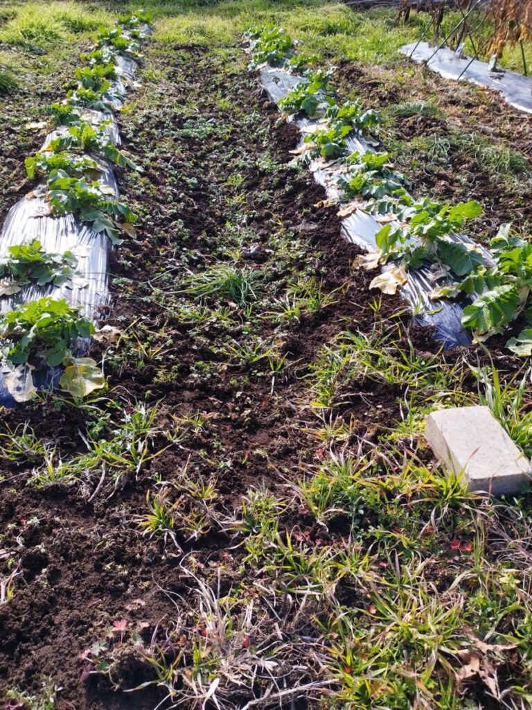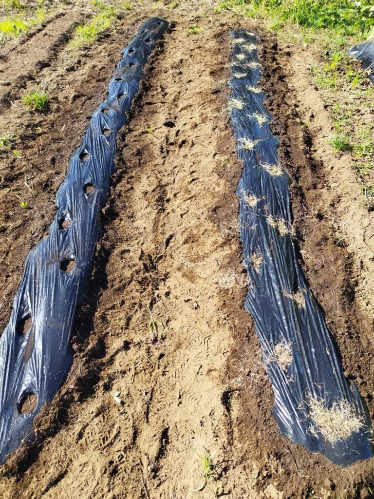 試しに1列の畝に、刈り取った芝草でフタをしてみよう。